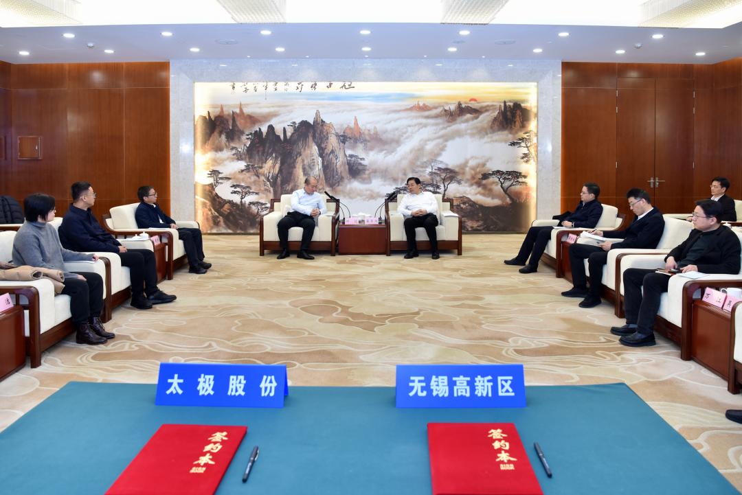 1月20日,太极计算机股份有限公司总裁仲恺一行来访无锡高新区。无锡高新区党工委书记、新吴区委书记崔荣国与仲恺一行进行会谈,并出席合作备忘录签约仪式。区领导顾国栋参加活动。